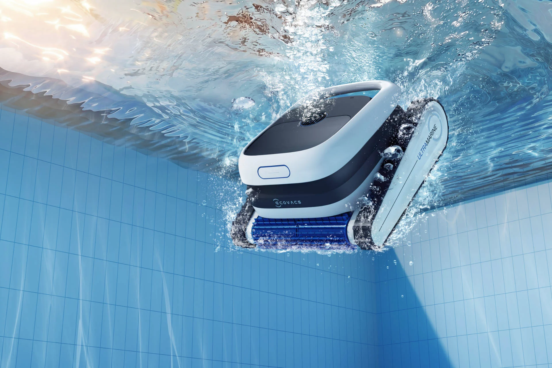 Ecovacs-Ultramarine-pool-cleaner-entering-water