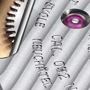 Powering the watch is Calibre C032, a fully in-house movement consisting of 378 components. Two key cams control both the daily date jump and the transition between months.
